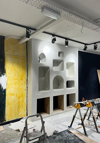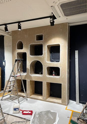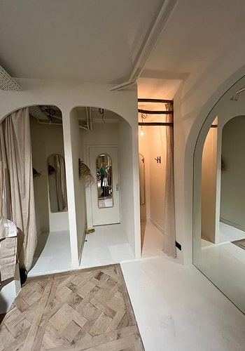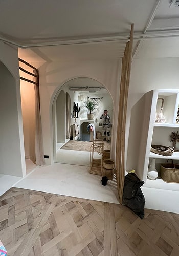 Individueel commercieel interieur van een kledingwinkel in Haarlem, gerealiseerd in twee weken. Het project omvatte de volledige cyclus van werkzaamheden – van basisafwerking tot het ontwerpen en vervaardigen van op maat gemaakte meubels, geïntegreerd in de architectuur van de ruimte. De duidelijke ritmiek van de nissen, de organische vormen en de ingetogen natuurlijke materialen zorgen voor een evenwicht tussen functionaliteit en esthetiek. De ruimte is ontworpen als een samenhangend parcours dat de bezoeker intuïtief leidt en de visuele identiteit van het merk versterkt. De realisatie is turnkey uitgevoerd, inclusief de ingang van de kelderruimte en alle belangrijke zones van de winkel.